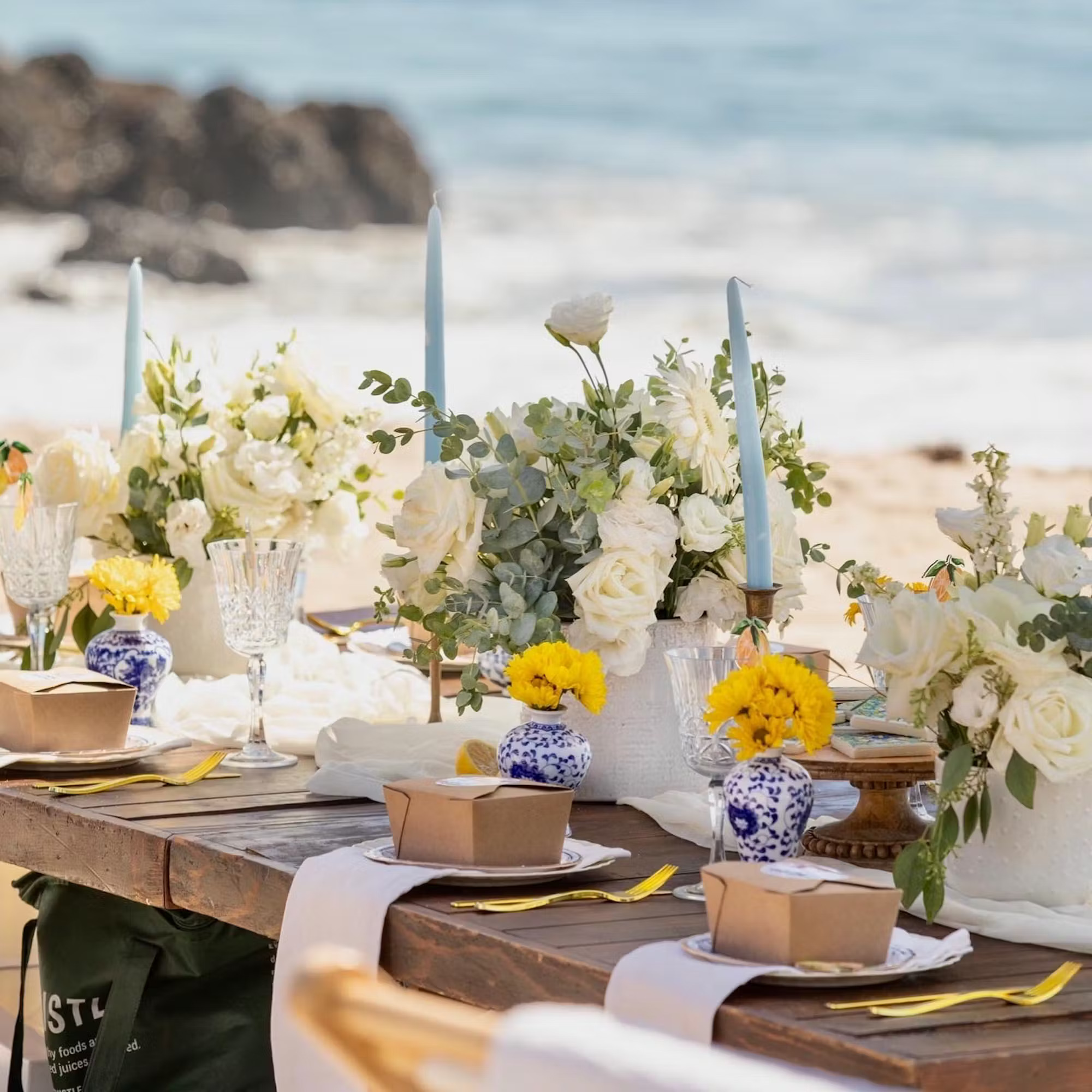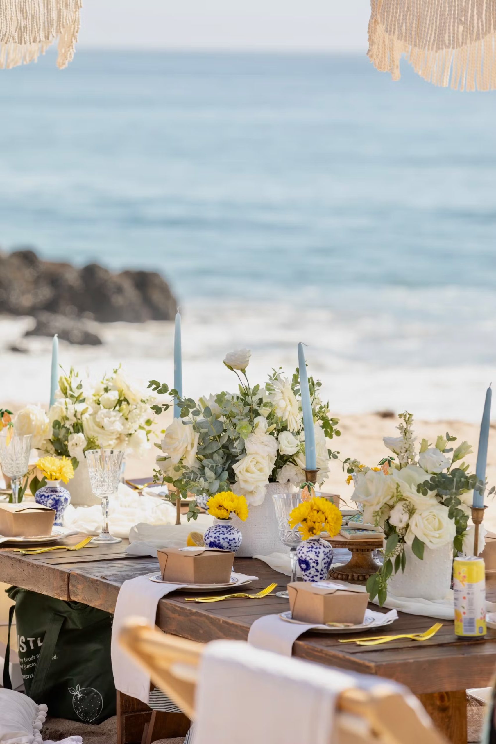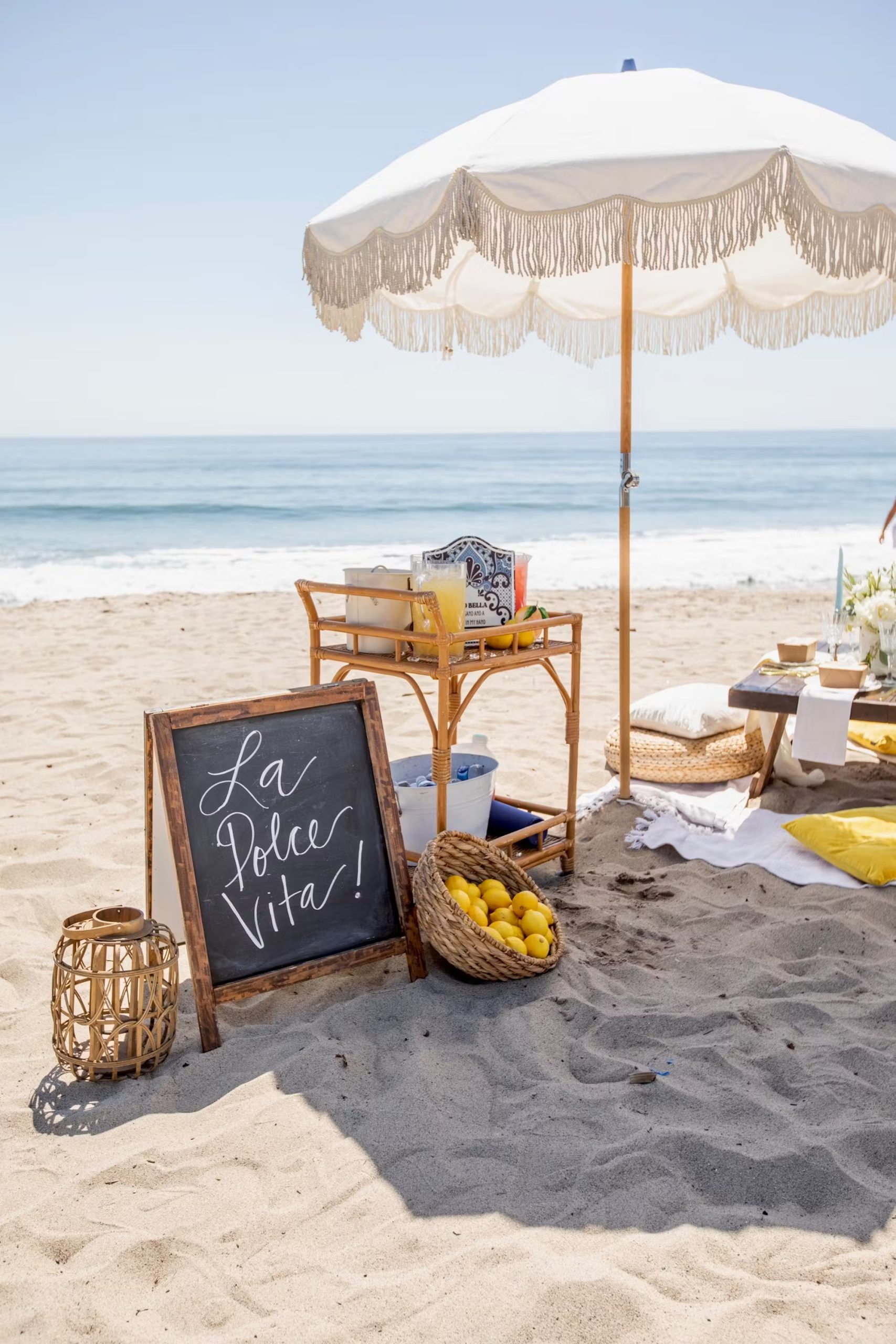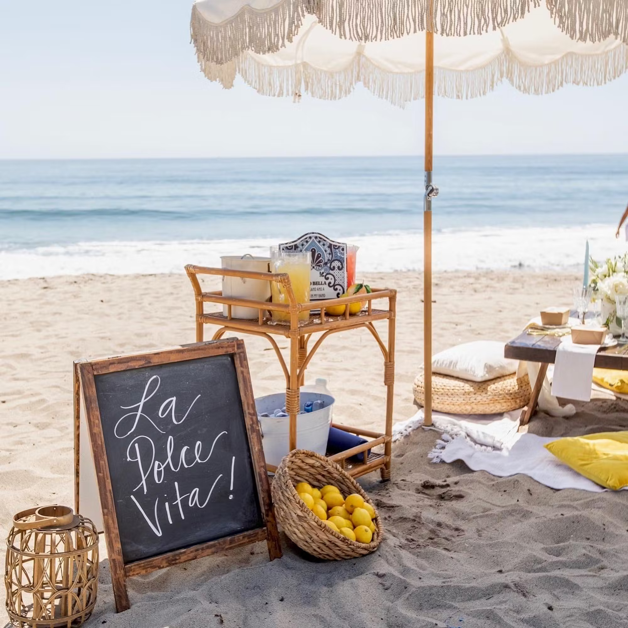 Amidst the caress of the ocean breeze, we whisked our guests away to an Amalfi Coast-inspired picnic along the picturesque shores of California. Here, we orchestrated a symphony of vibrant colors, weaving dreams of Italian splendor for this Ulta-lux seaside soiree.