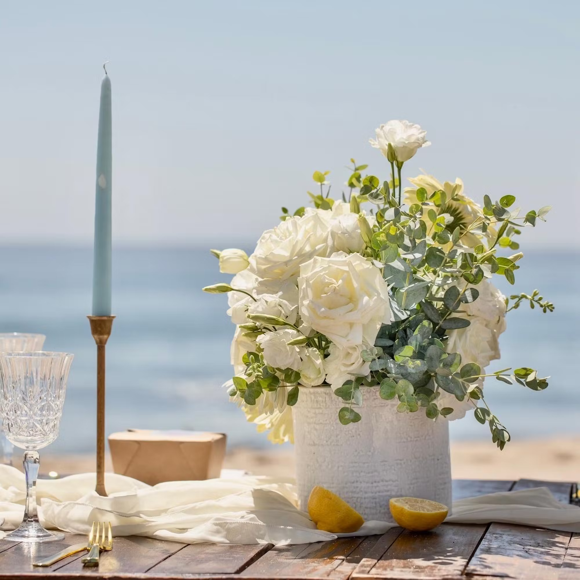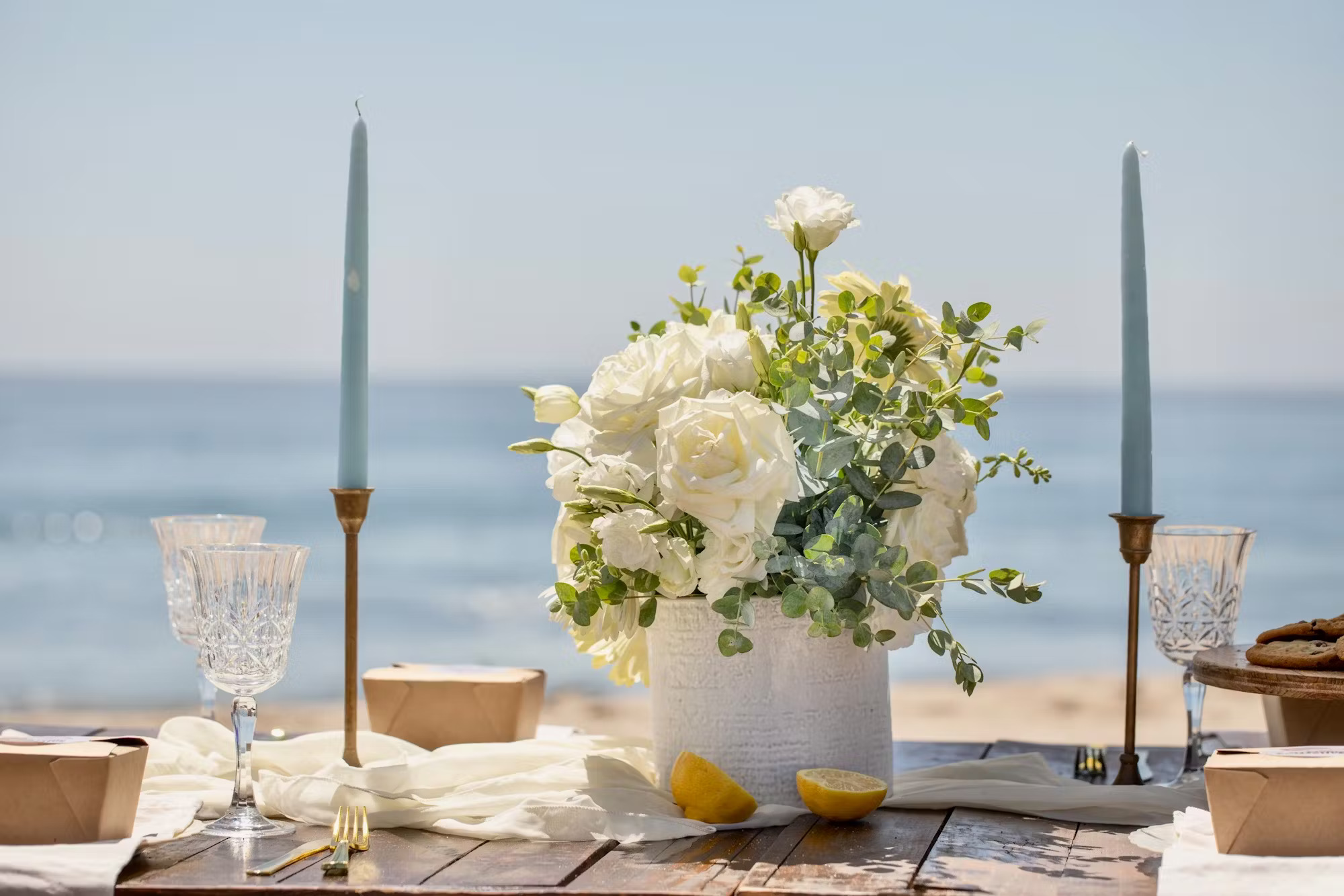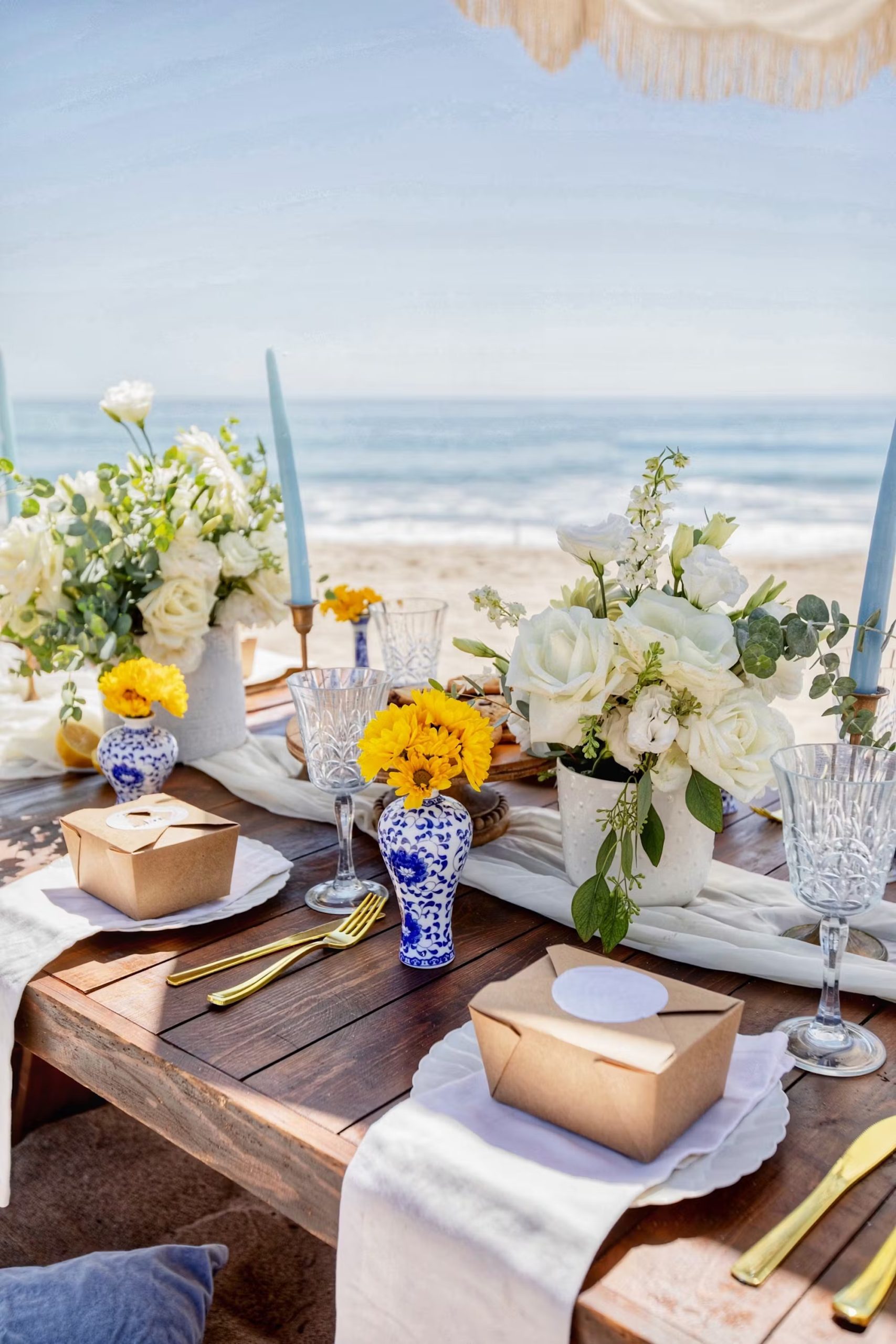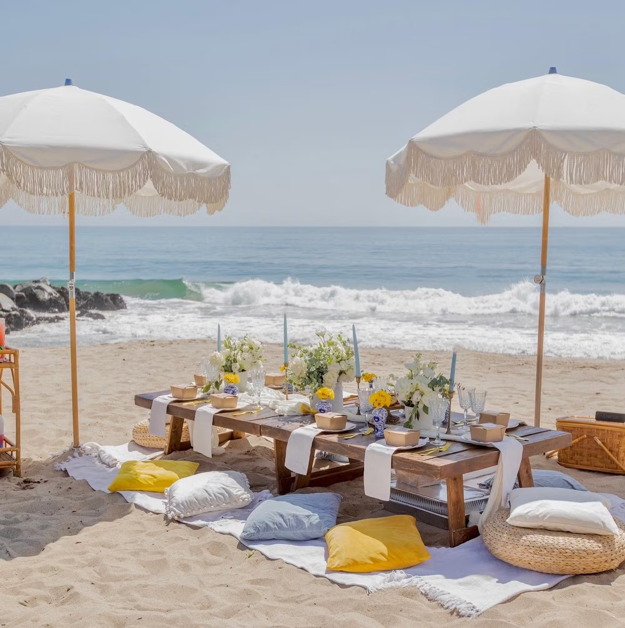 Amidst the caress of the ocean breeze, we whisked our guests away to an Amalfi Coast-inspired picnic along the picturesque shores of California. Here, we orchestrated a symphony of vibrant colors, weaving dreams of Italian splendor for this Ulta-lux seaside soiree.